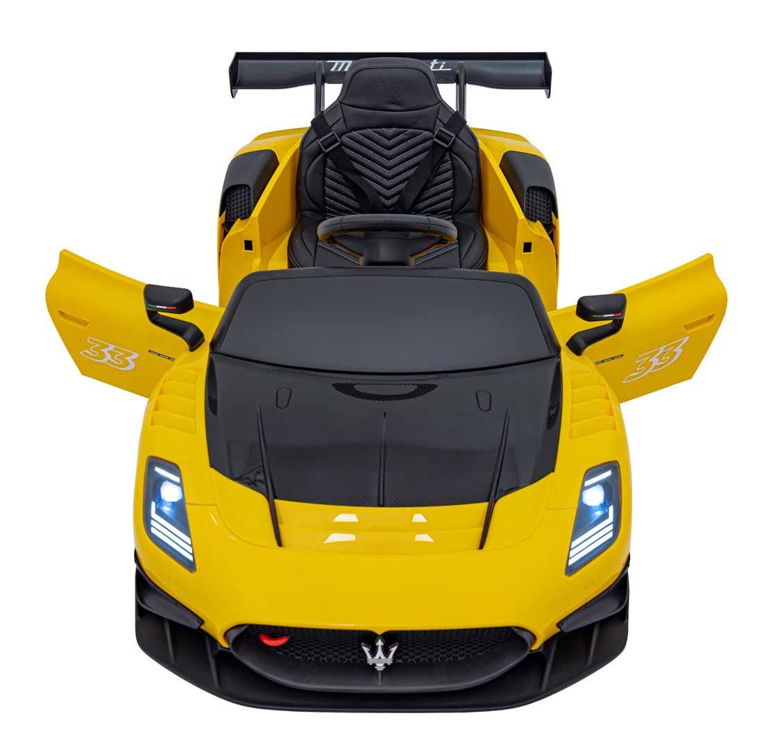 Poznaj Maserati MC20 GT2 Dla Dzieci Żółty – elektryczny pojazd zabawka, który łączy realistyczny sportowy wygląd Maserati MC20 GT2 z bezpieczną, intuicyjną zabawą. Żółte wykończenie i charakter Maserati tworzą wyjątkowy efekt na podwórku i w domu. Pojazd zasilany jest akumulatorem 12V/7Ah, co gwarantuje długie, ekscytujące sesje jazdy.