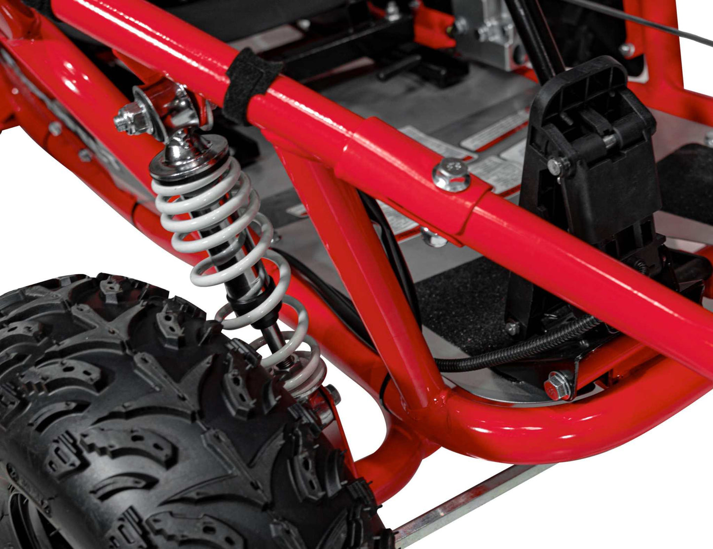 - Zaprojektowano z solidną ramą malowaną proszkowo i wzmocnionym tylnym wahaczem, które utrzymują stabilność w terenie.