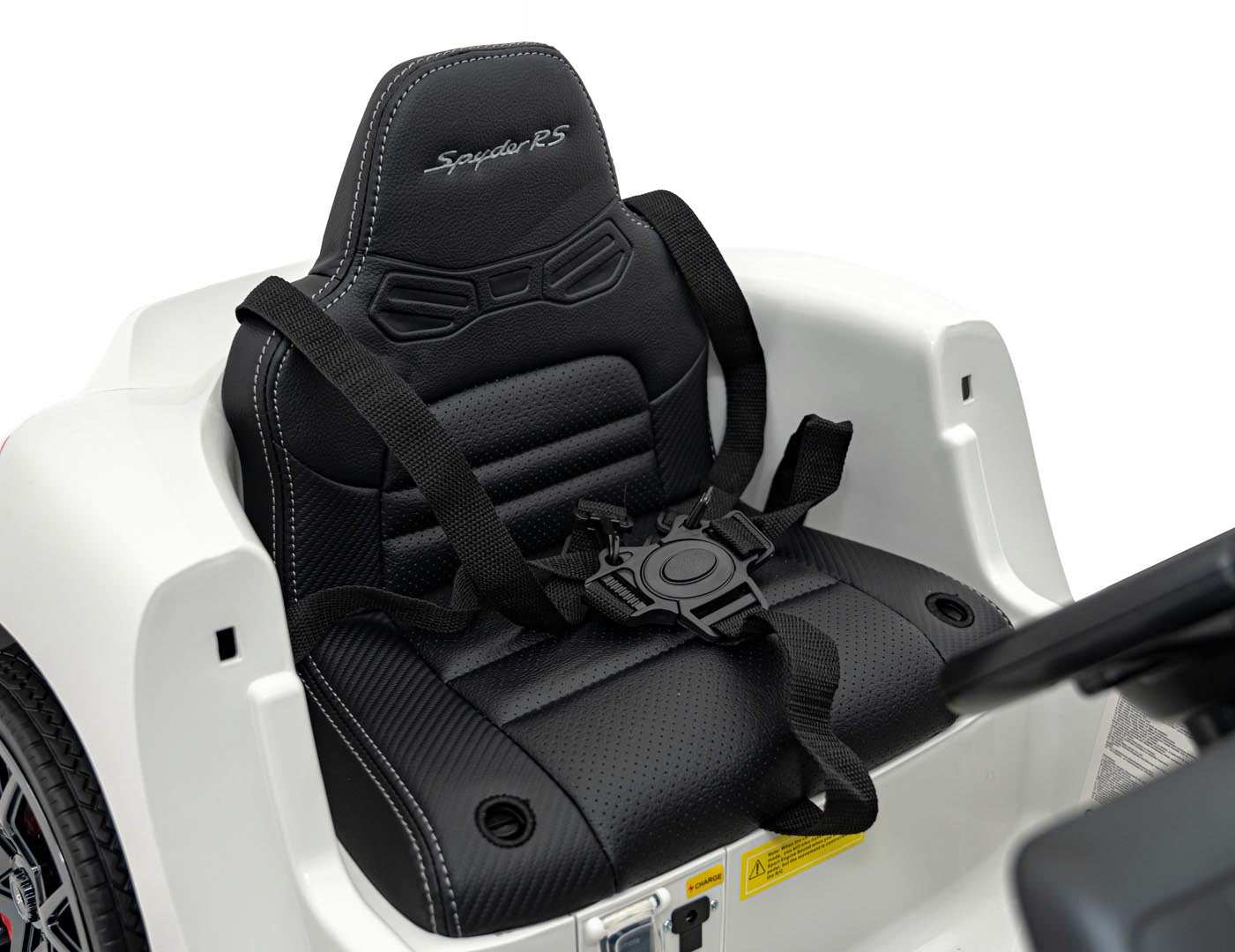 Porsche Spyder RS 718 Dla Dzieci Biały to stylowy i bezpieczny samochód elektryczny dla młodych fanów motoryzacji. Inspirowany Porsche, łączy imponujący wygląd z łatwą obsługą i zabawą w domowym ogrodzie, gwarantując niezapomniane chwile za kierownicą.