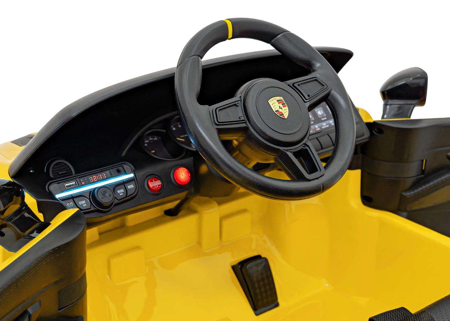 Pojazd Porsche Spyder RS 718 – Żółty dla dzieci łączy realistyczny design z bezpieczną, prostą jazdą. Dzięki mocnym dwusilnikowym układom i solidnemu zasilaniu 12V 7Ah młodzi fani motoryzacji poczują dynamiczne wrażenia na krótkich trasach w domu i ogrodzie, a pilot zdalnego sterowania 2,4 GHz umożliwia rodzicom pewne prowadzenie na początku przygody za kierownicą.