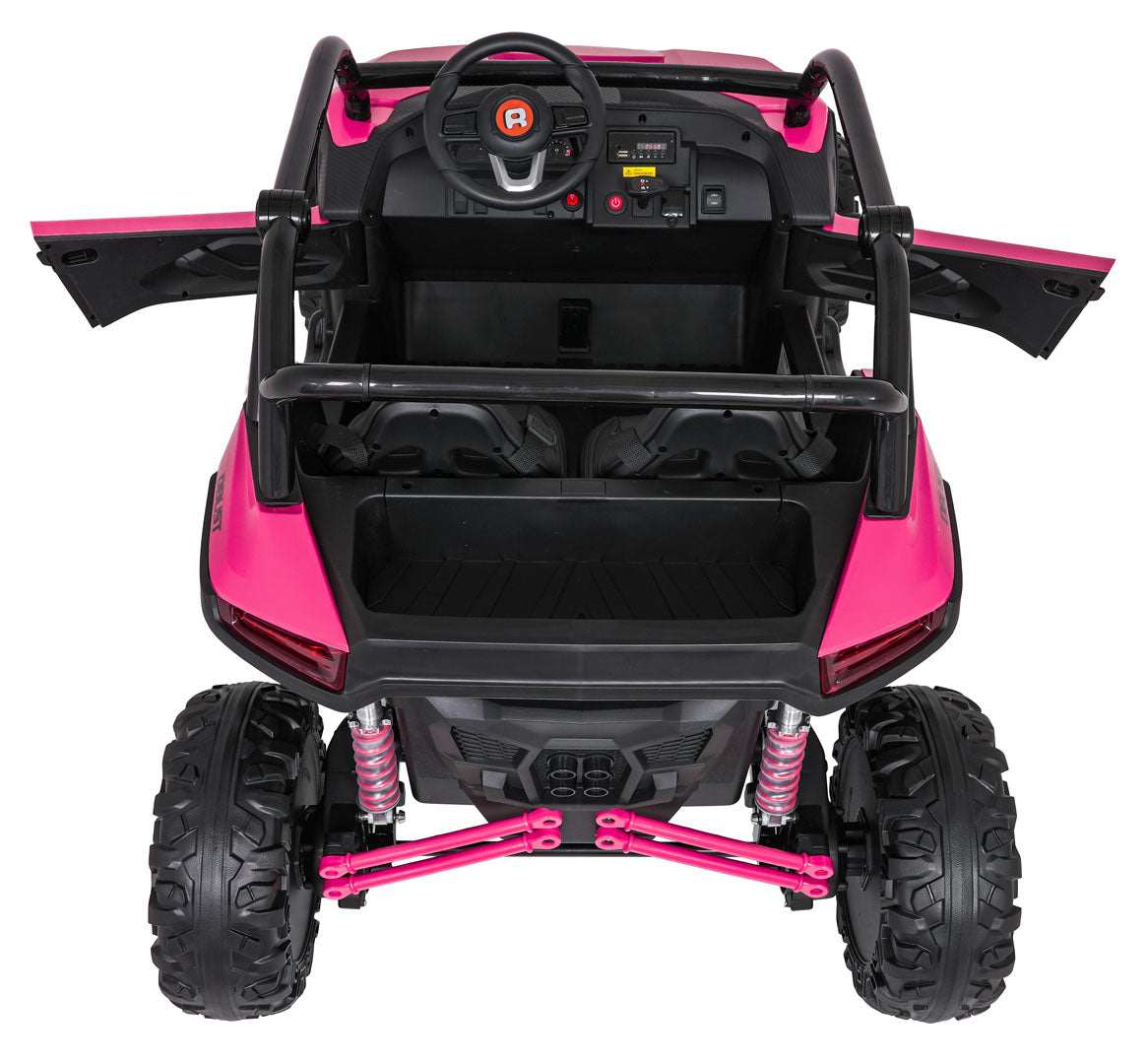 Różowy Pojazd RACING Road 2000 od Minika to elektryczny samochodzik dla dzieci, który łączy radość jazdy z bezpiecznym sterowaniem na podwórku i w ogrodzie. Dzięki akumulatorowi 24V/7Ah, trzem prędkościom i możliwości przełączania napędu między 2WD a 4WD, zapewnia dynamiczną jazdę pod czujnym okiem rodziców.