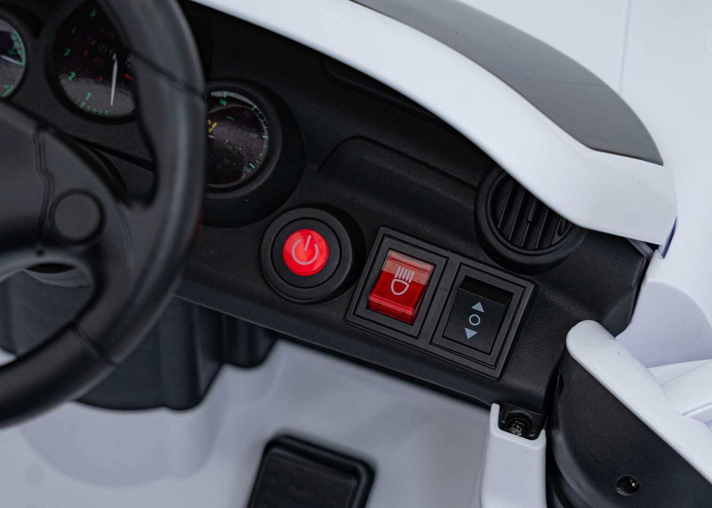 Dopasowanie / Rozmiar: Model został zaprojektowany z myślą o stabilności i wygodzie młodych kierowców; siedzenie z ekoskóry zapewnia komfort, a zestaw funkcji umożliwia zabawę na różnych nawierzchniach.