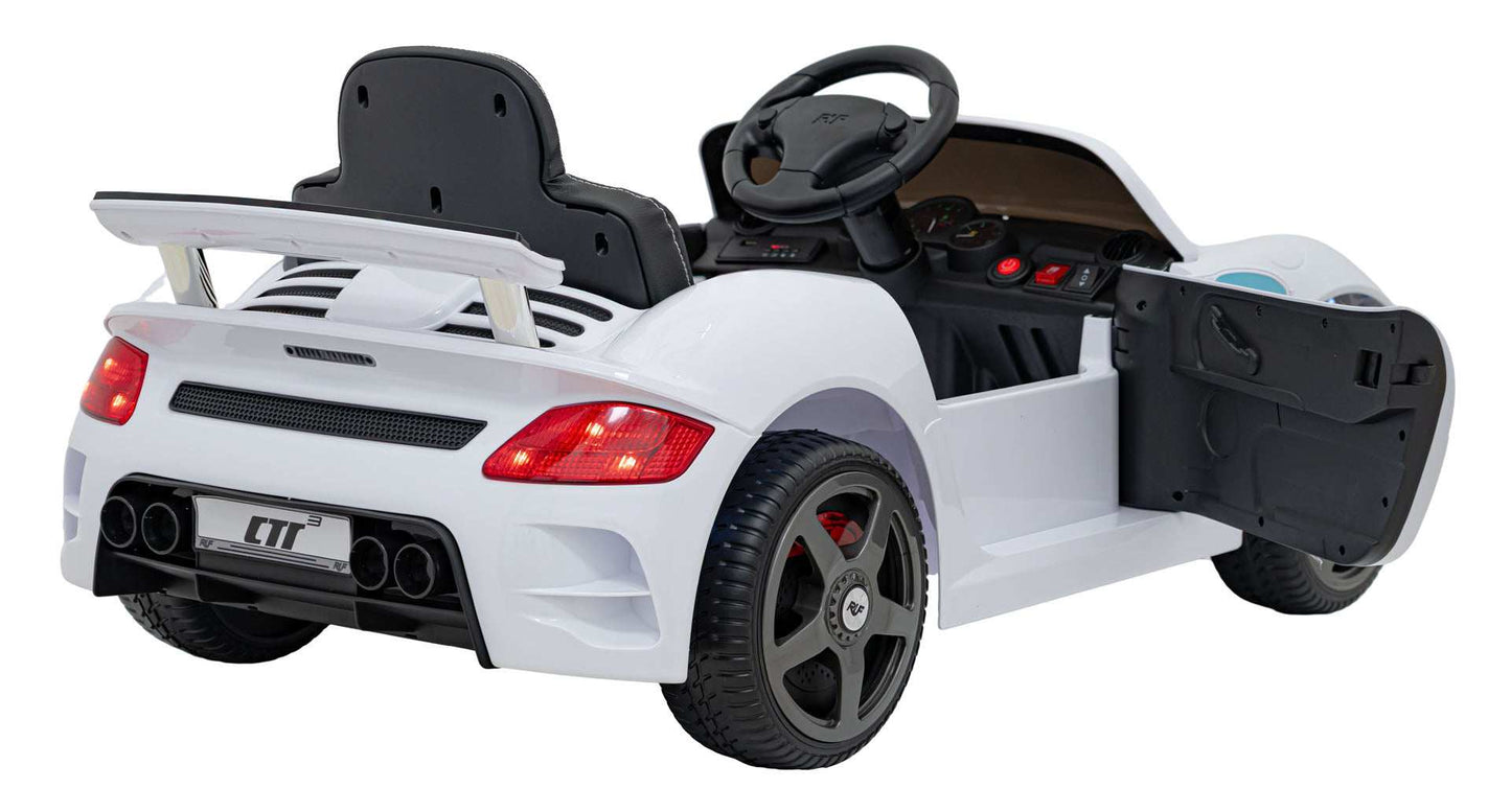 Pojazd RUF CTR3 Biały to elektryczny samochodzik dla dzieci, łączący sportowy styl z bezpieczną zabawą. Wyprodukowany przez Minika, z dbałością o trwałość i realistyczny design, doskonale sprawdzi się na podwórku i podczas rodzinnych przejażdżek.