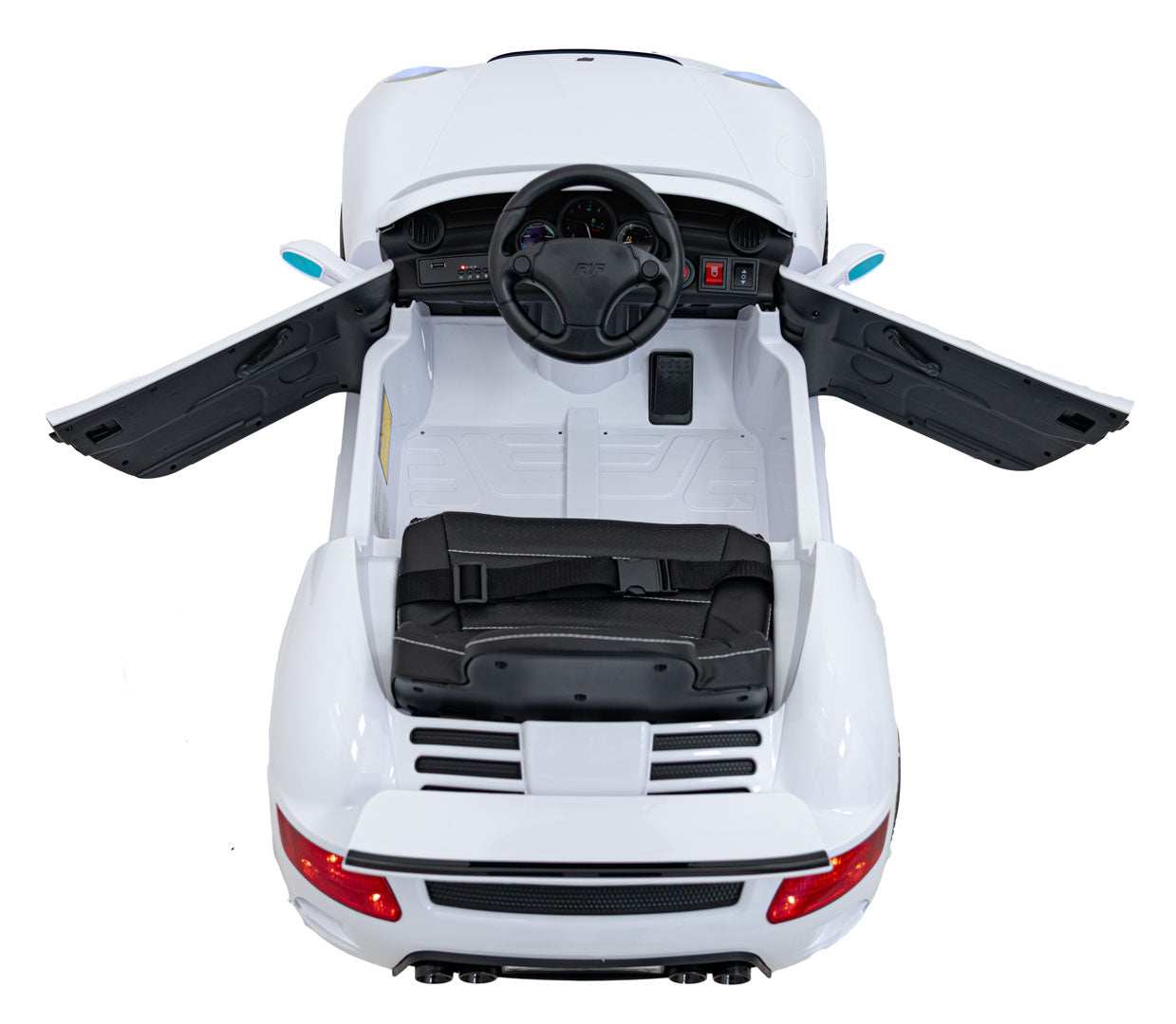 - Uatrakcyjnia jazdę światłami LED z przodu i z tyłu oraz zestawem multimedialnym MP3, Bluetooth i wejściem AUX.