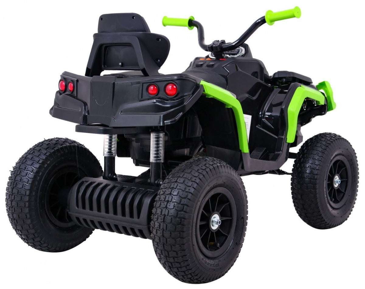Quad ATV Air dla dzieci w kolorze czarno-zielonym to bezpieczna, angażująca zabawka, która zamienia każdą przejażdżkę w prawdziwą przygodę. Wyprodukowany przez Minika pojazd łączy radość z jazdy z praktycznymi funkcjami: dwa silniki 45W napędzają energiczny ruch, a akumulator 12V/7Ah zapewnia długie sesje na świeżym powietrzu. Solidna konstrukcja w czarno-zielonym wykończeniu, pompowane koła i cztery amortyzatory gwarantują komfort i stabilność nawet na nierównościach.