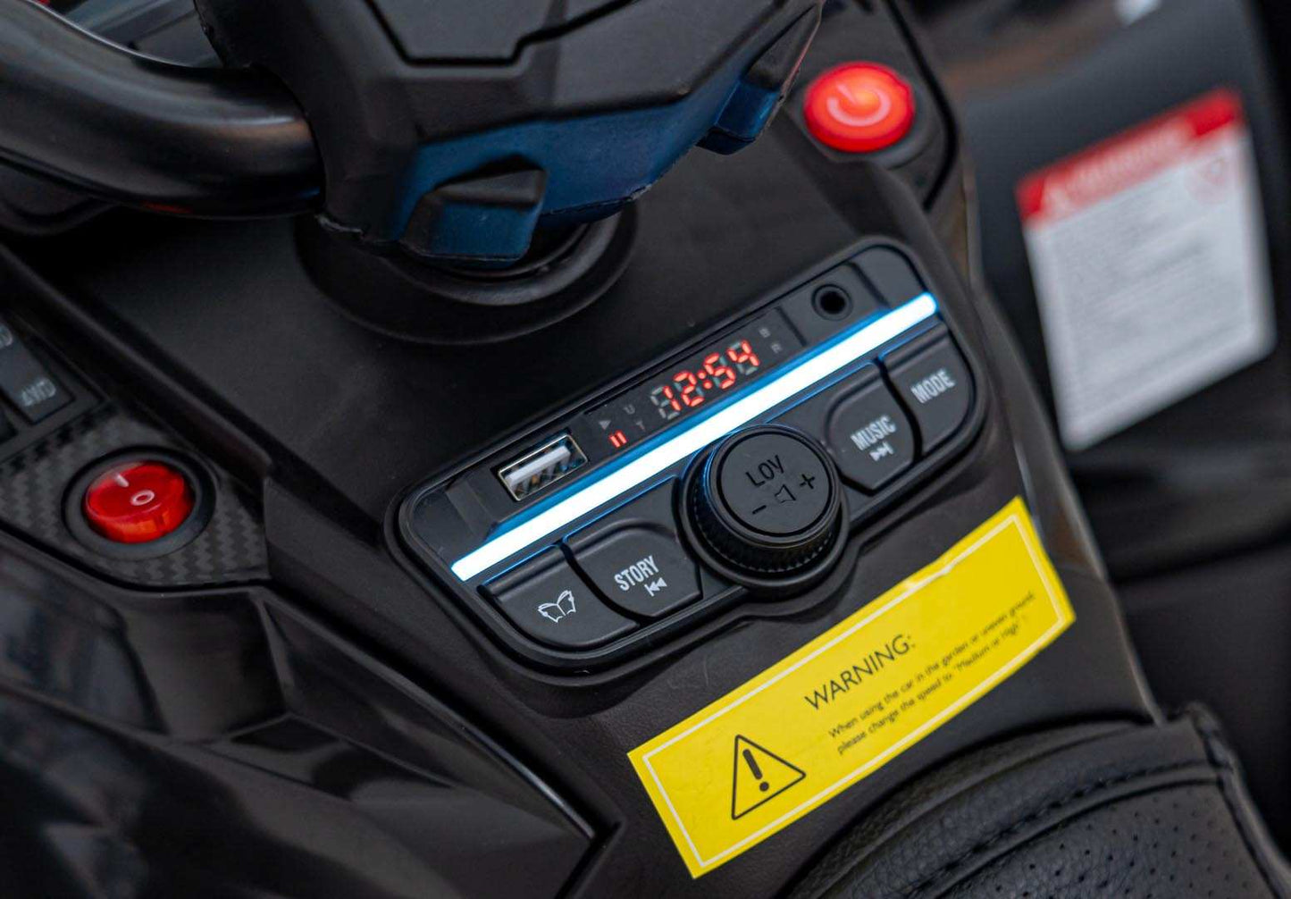 Care/fit: Maksymalna waga użytkownika do 50 kg; zasilanie 12V/14Ah; pilot 2.4 GHz; napęd 2WD/4WD; dwukierunkowy ruch i funkcja Start/Stop zapewniają bezpieczną zabawę.
