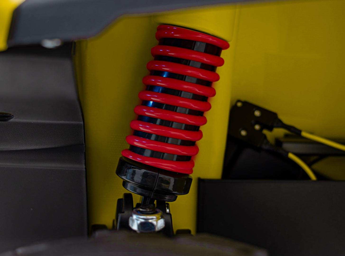 - Doświadcz komfortu dzięki kołom EVA 32x13 cm i dwóm amortyzatorom z tyłu, które redukują wstrząsy.