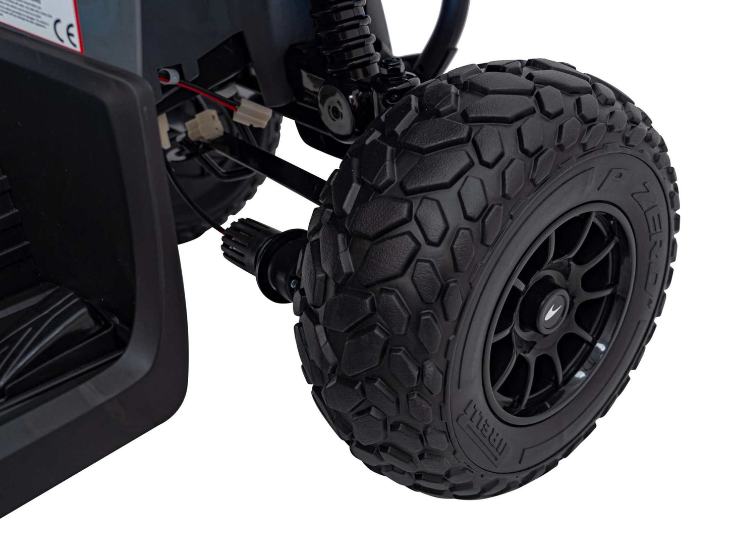 Care/fit: Został zaprojektowany z myślą o młodych kierowcach – konstrukcja o szerokości ok. 14 cm mieści się w bezpiecznej, kompaktowej ramie. Zasilanie 12V 10Ah i maksymalne obciążenie do 30 kg wspierają długie sesje zabawy, a przycisk STOP zapewnia natychmiastowe wyłączenie w razie potrzeby.