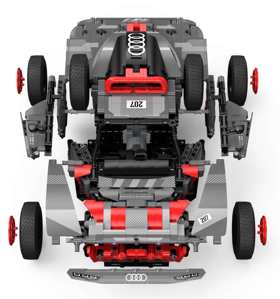 - Odwzorowuje realistyczne proporcje 1:14, oddając charakter Audi RS Q e-tron.