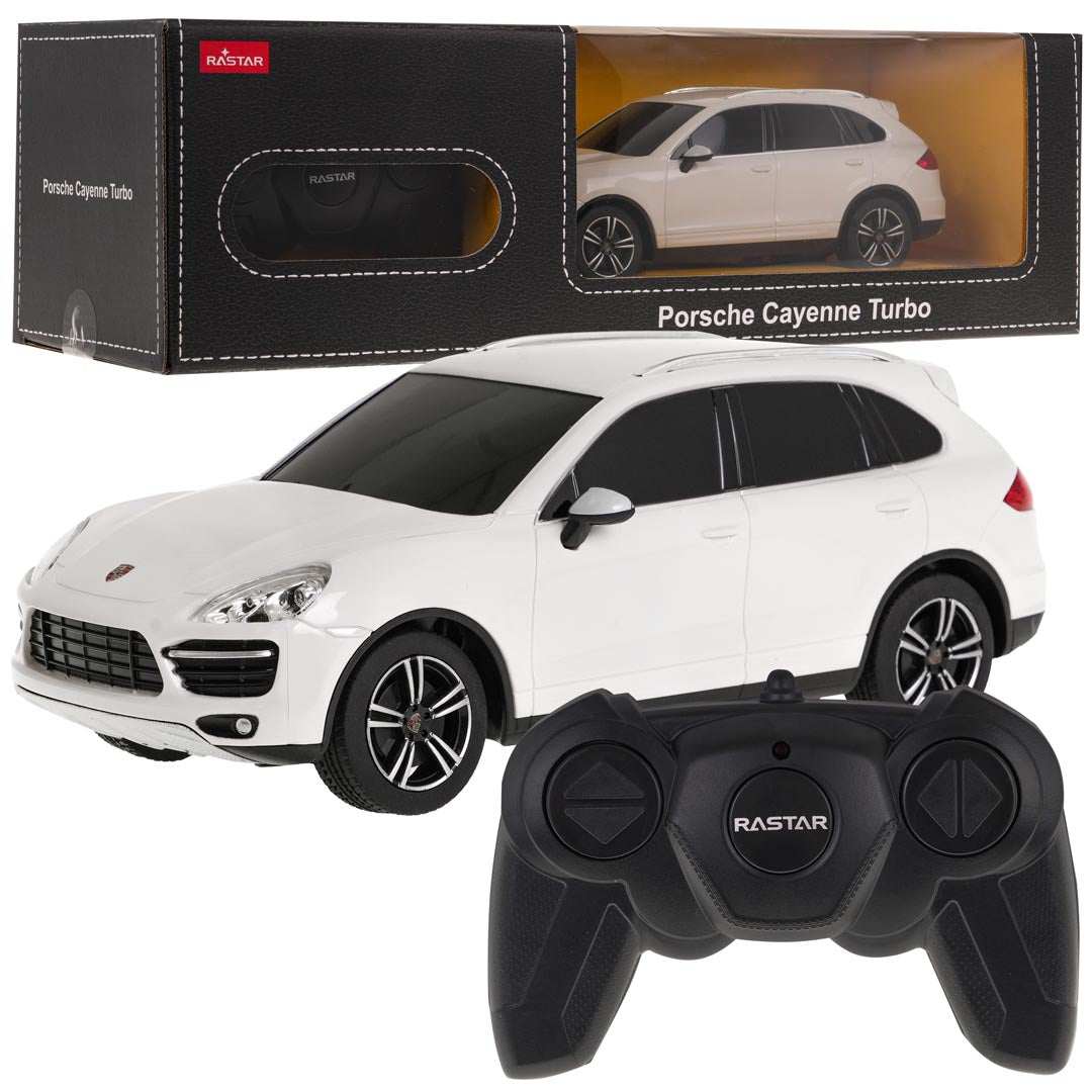 Poznaj RC Porsche Cayenne Turbo 1:24 Biały od RASTAR – precyzyjny model, który łączy pasję do motoryzacji z zabawą na co dzień. Ten kompaktowy samochodzik wygląda jak pełnowartościowy Porsche, a realistyczny design i detale sprawiają, że jazda nabiera prawdziwego charakteru w domowym otoczeniu, a gotowy do działania od razu po wyjęciu z opakowania.