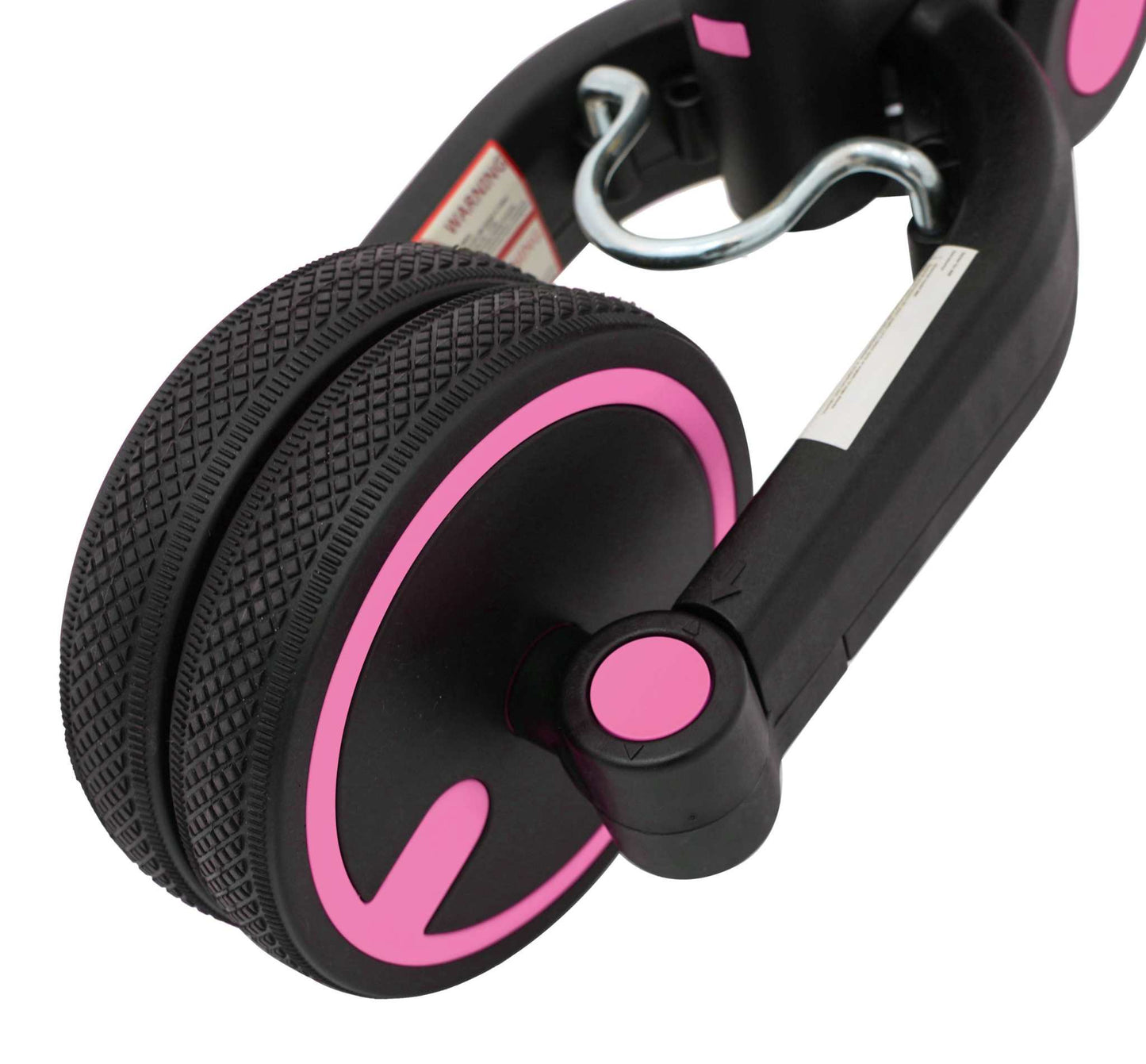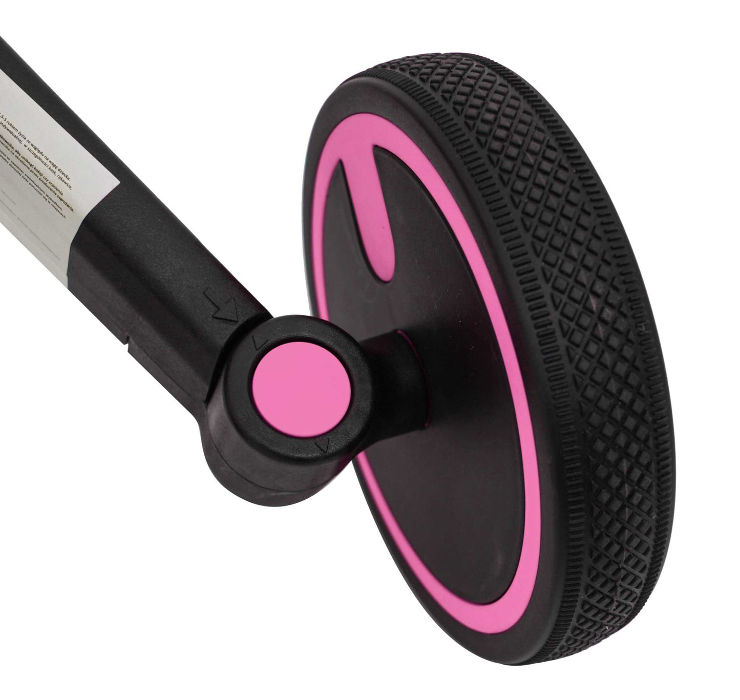- Zapewnia stabilność na różnych nawierzchniach dzięki gumowym oponom z bieżnikiem i antypoślizgowym rączkom.