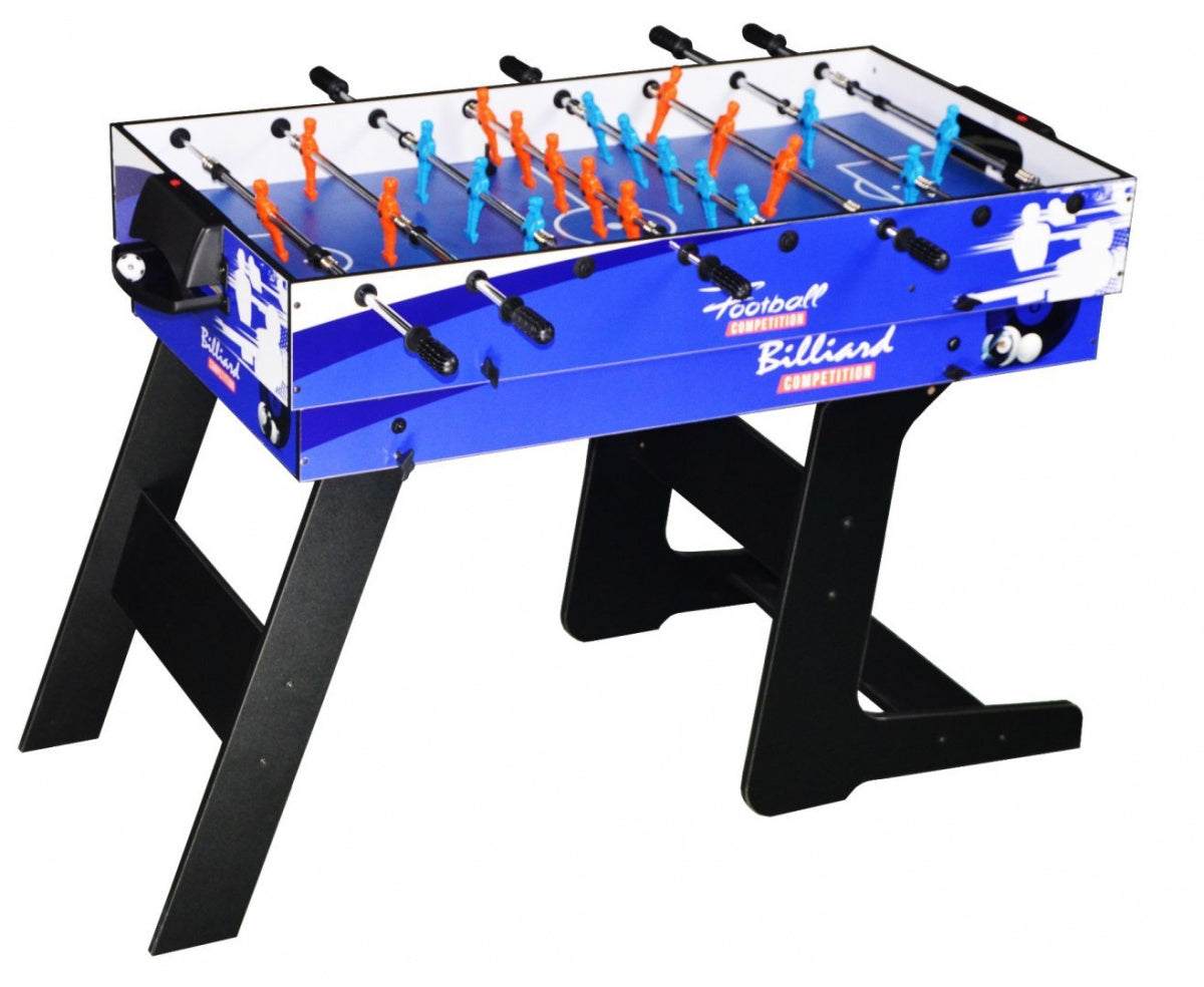 Odkryj kompaktowy zestaw do domowej rozrywki, który łączy cztery popularne gry w jednym praktycznym stole. Składany stół do Gier 4 w 1 jest idealny dla rodzin i miłośników gier, którzy cenią łatwe przełączanie między bilardem, hokejem powietrznym cymbergajem, piłką nożną i tenisem stołowym bez zajmowania dużo miejsca.