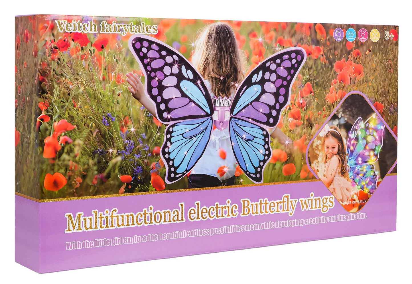 Magiczne skrzydła motyla w intensywnym fiolecie dla dzieci od trzeciego roku życia, łączące bajkowy design z efektem światła. Idealne na bal, przedstawienie lub codzienną zabawę, dodają magii każdemu dniu.