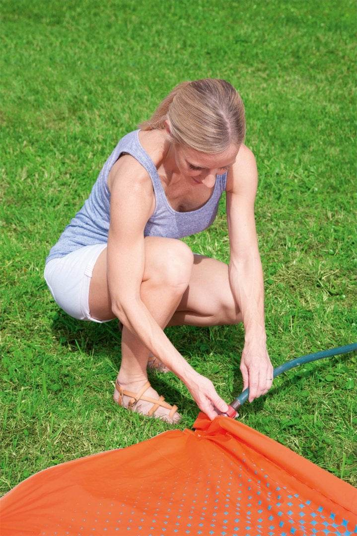 Dzięki prostemu podłączeniu do węża ogrodowego zjeżdżalnia gotowa do użycia w kilka chwil. Woda na torze zapewnia poślizg, a końcowy rozprysk dodaje efektownych wrażeń podczas każdego zjazdu. Produkt doskonale sprawdzi się jako letnia atrakcja na podwórku, rozwijając koordynację ruchową i przynależność do wspólnej zabawy z rówieśnikami.