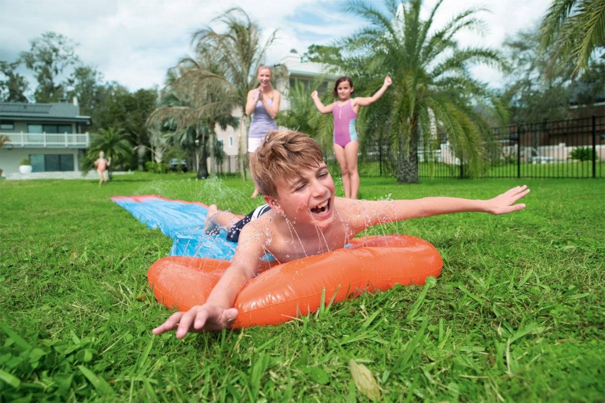 Ślizg wodny dla dzieci w wieku od 3 lat to propozycja dla fanów letniej zabawy na świeżym powietrzu. Pojedynczy tor o długości 4,88 m zapewnia dynamiczną, bezpieczną zjeżdżalnię oraz radość zarówno solo, jak i w gronie przyjaciół.