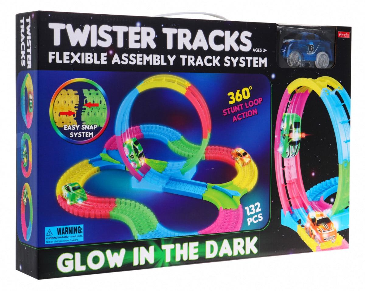 Dzięki możliwości świecenia w ciemności tor staje się bardziej atrakcyjny, a efekt LED na samochodziku dodaje wyjątkowego charakteru rozgrywce. Wielkość konstrukcji i pętla 360° zachęcają do kreatywnej zabawy na wiele sposobów, rozwijając wyobraźnię podczas rywalizacji na torze.