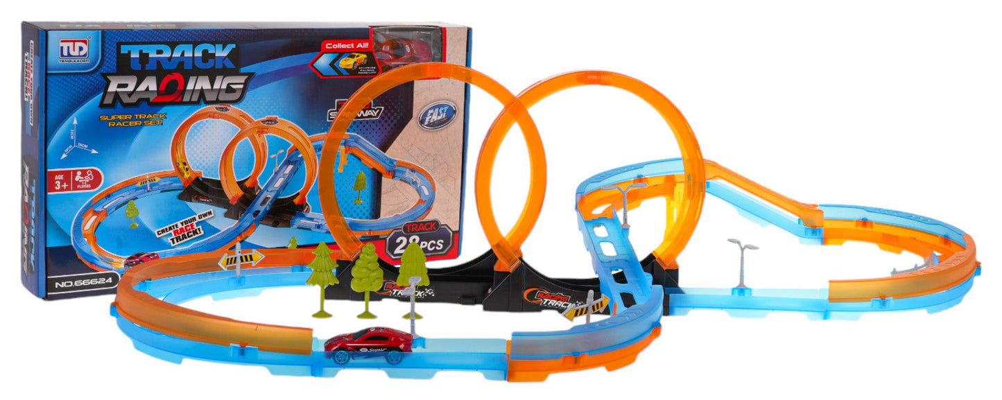 Ta zabawka rozwija koordynację ruchową, precyzję w układaniu elementów i cierpliwość podczas montażu. Dwa 360-stopniowe pętle gwarantują dynamiczną, pełną akcji jazdę, a różnorodne konfiguracje toru zachęcają do kolejnych prób i odkrywania nowych tras.