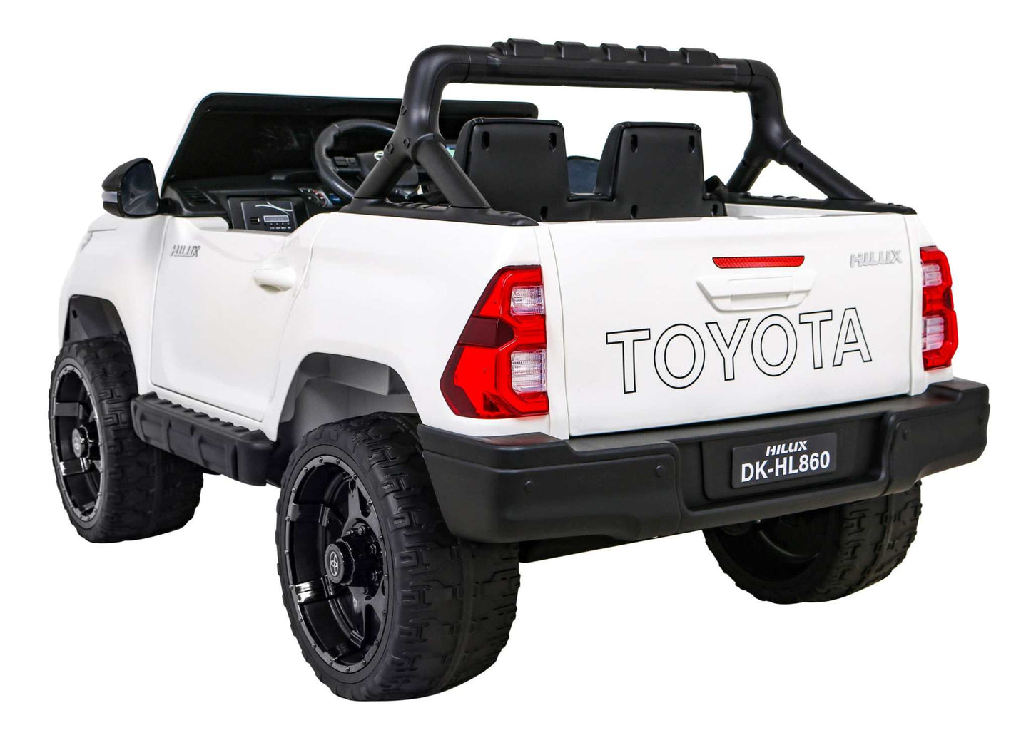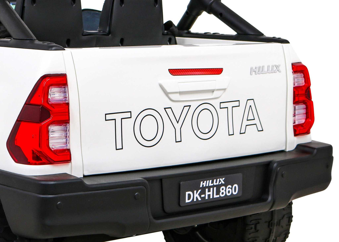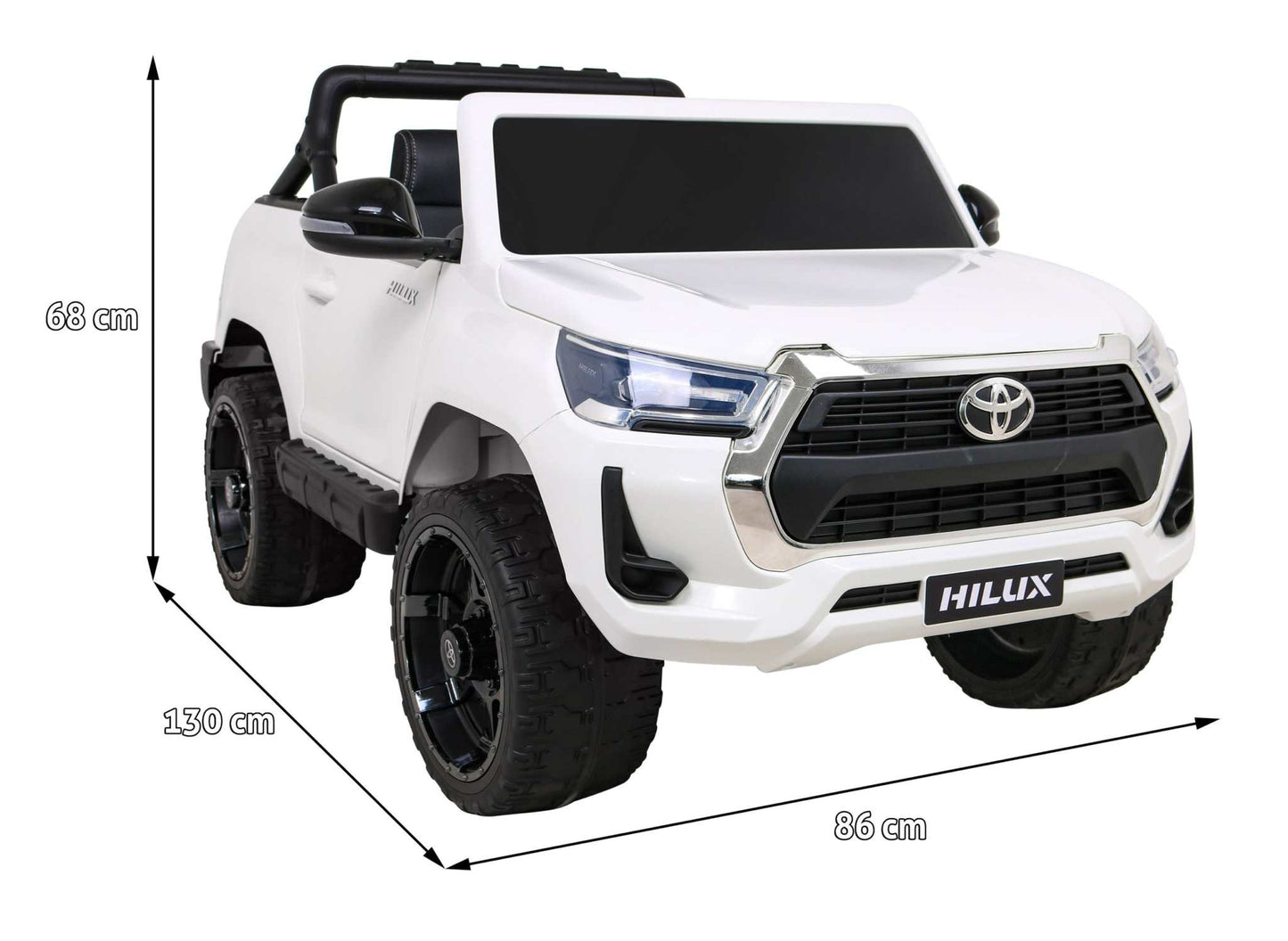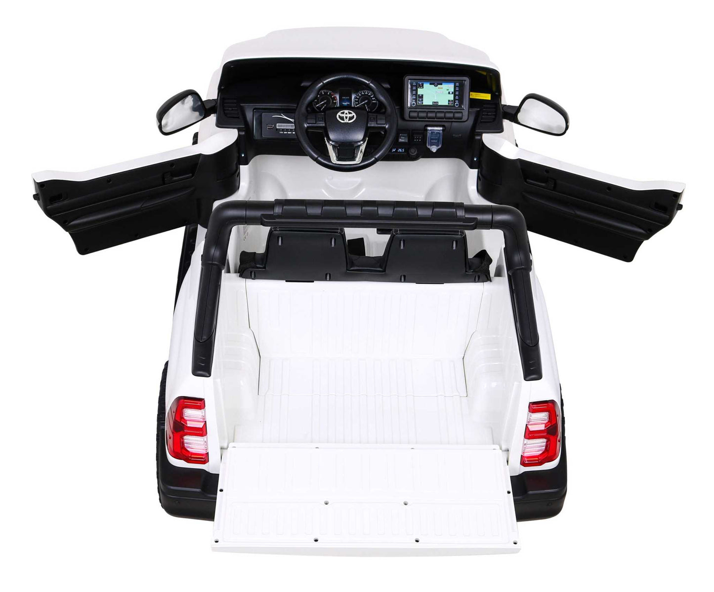 Toyota Hilux na akumulator dla dzieci — Biały Pickup z napędem 4x4, pilotem i dwoma bagażnikami