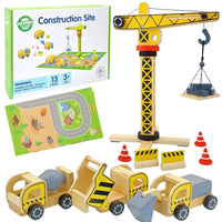 WOOPIE GREEN Drewniany Plac Budowy 5w1 Ruchomy Dźwig XXL Pojazdy Budowlane 13 el. FSC