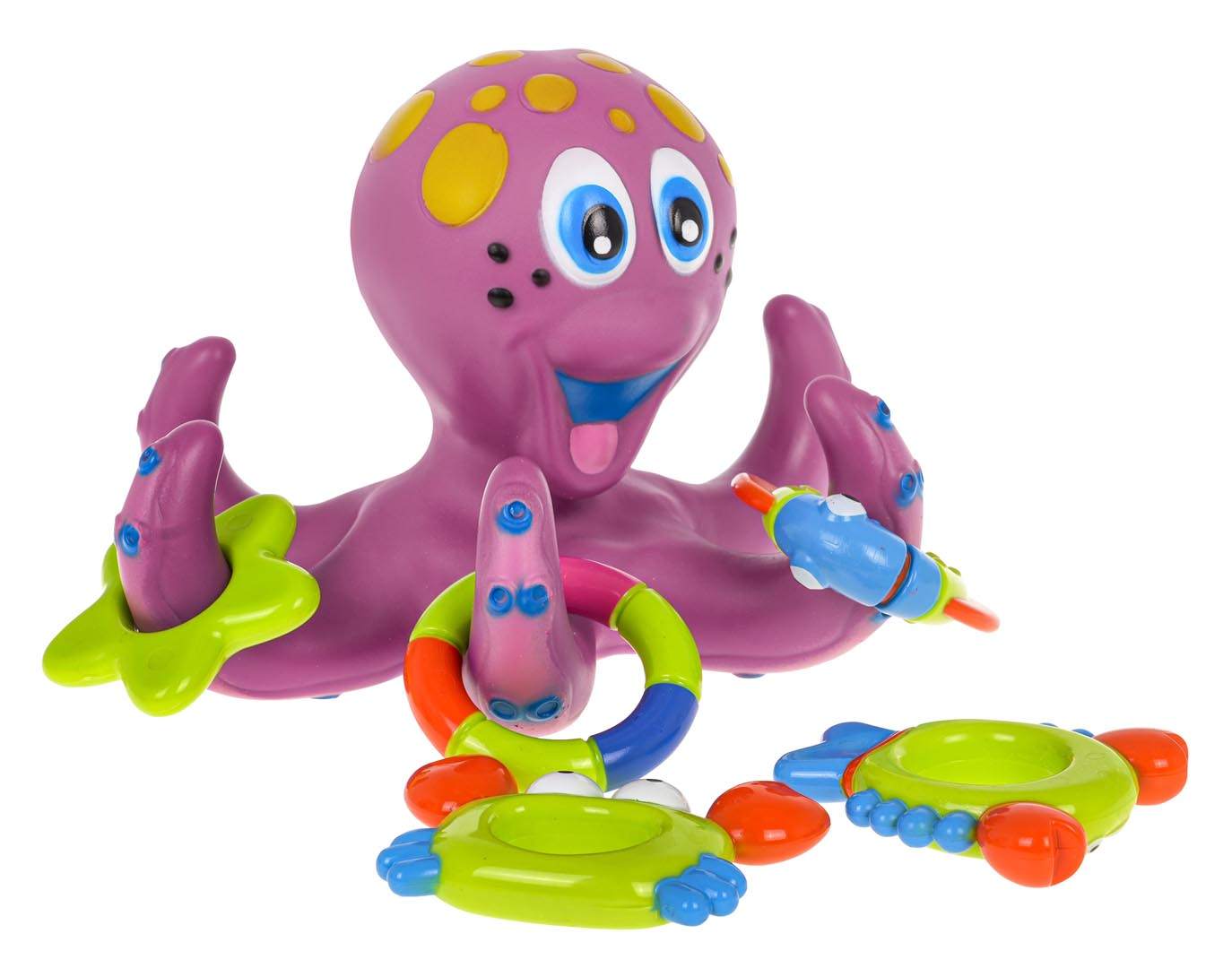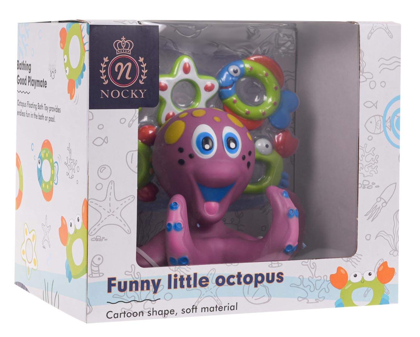 To bezpieczna zabawka do kąpieli w formie dużej gumowej ośmiornicy, przeznaczona dla dzieci od pierwszych dni życia. Sprawia, że każda kąpiel to radosny rytuał, łączący zabawę z rozwojem sensorycznym i motorycznym.