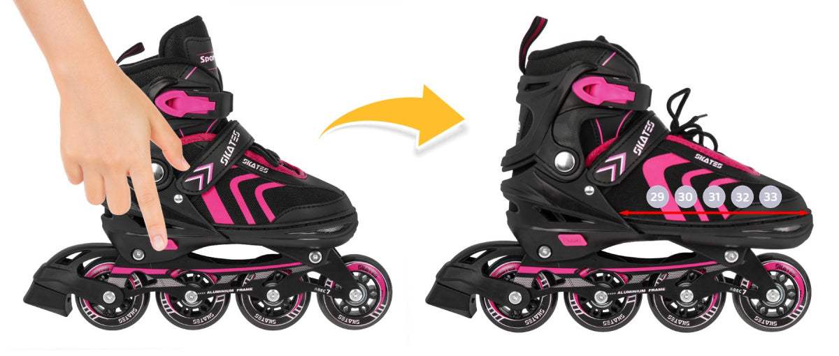 Zestaw 4w1 Rolki Wrotki Łyżwy dla dzieci to wszechstronna propozycja dla młodych miłośników sportów na świeżym powietrzu. Dzięki łatwej regulacji rośnie z dzieckiem od rozmiaru 29 do 33, zapewniając komfort i bezpieczeństwo podczas zabawy.