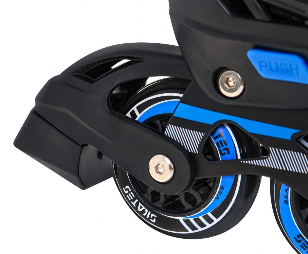 Zestaw wspiera naukę jazdy na rolkach i wrotkach, a także ułatwia zapoznanie się z łyżwami. Dzięki regulacji rozmiaru zestaw rośnie razem z dzieckiem, co zapewnia długotrwałe użytkowanie i wygodę. Półtwarda konstrukcja oraz trzy-sekwencyjne zapięcie gwarantują stabilność i łatwość użycia, nawet przy pierwszych krokach.