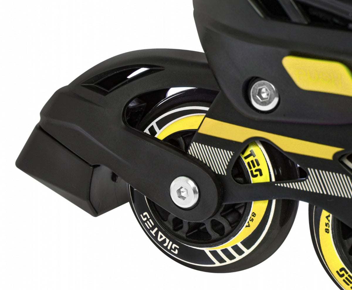 Regularne dopasowanie i stabilne zapięcie wpływają na komfort i bezpieczeństwo podczas jazdy. Dzięki systemowi regulacji zestaw rośnie wraz z rosnącymi potrzebami dziecka, umożliwiając dłuższe użytkowanie bez konieczności wymiany obuwia. Półtwarda konstrukcja łączy elastyczność buta z ochroną kostki, co przekłada się na pewność podczas pierwszych prób jazdy oraz w trakcie zabawy na dworze.