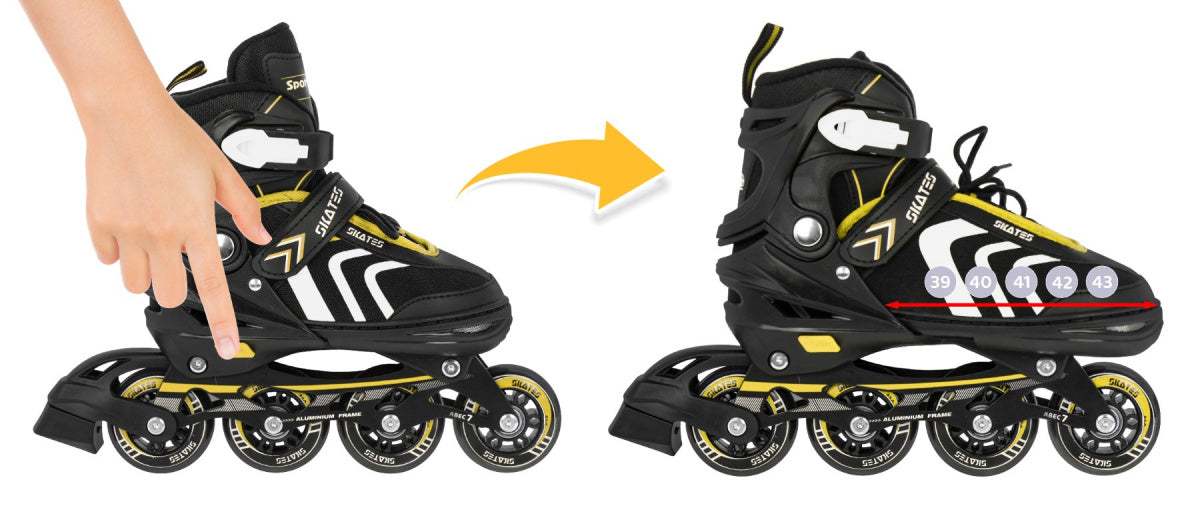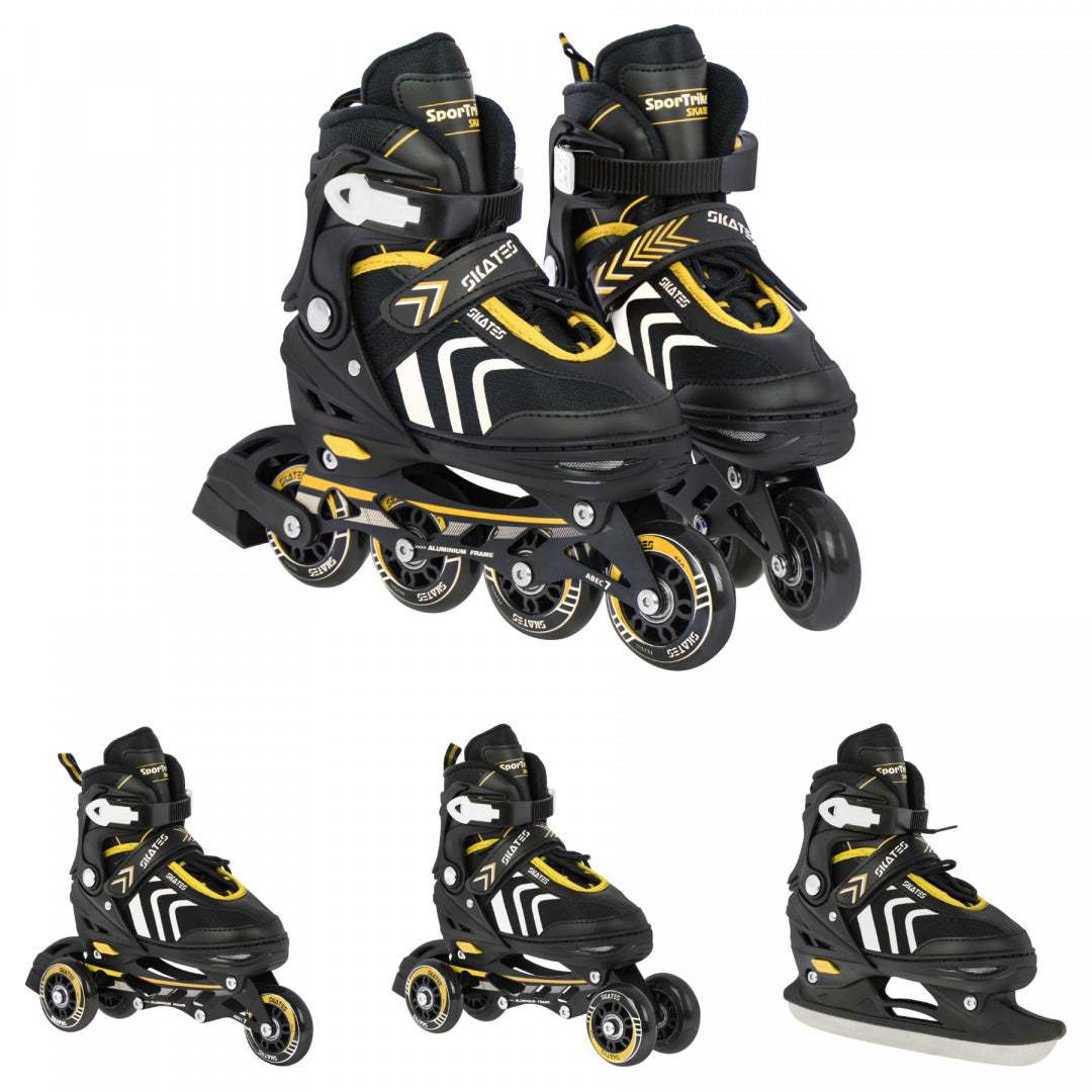 Zestaw 4w1: Rolki, Wrotki i Łyżwy dla dzieci – Rozmiar 39–43, Żółty