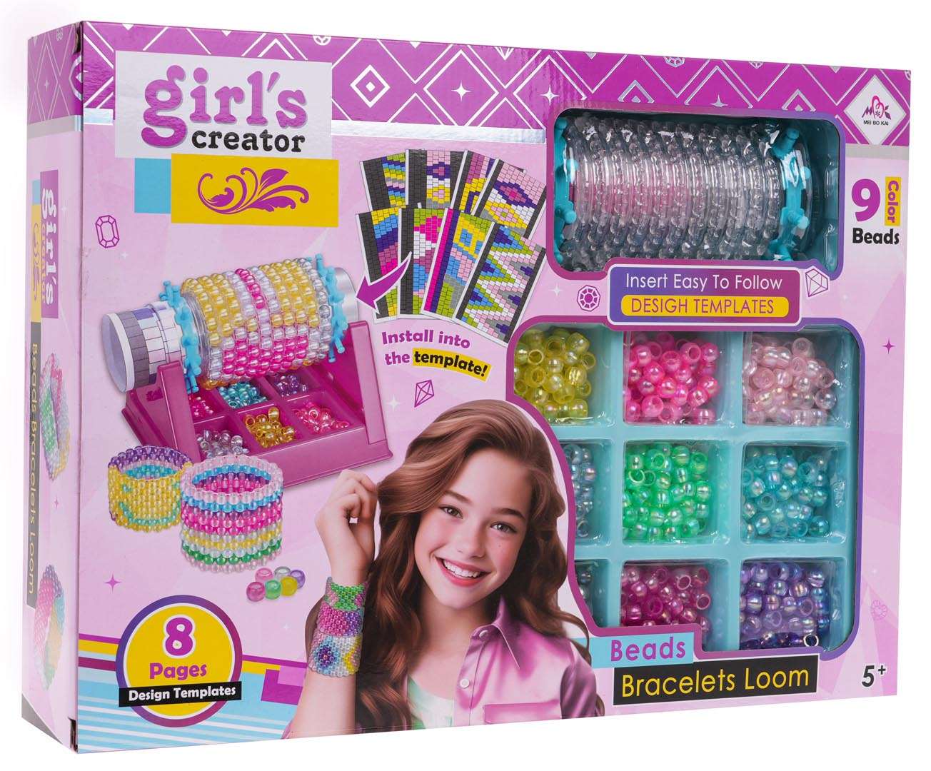 Zestaw Do Robienia Bransoletek z Kołowrotkiem + Akcesoria to kompletny zestaw dla młodych projektantów biżuterii. Przeznaczony dla dzieci od 5 roku życia, łączący prostotę tworzenia z kreatywną zabawą. W zestawie znajduje się krosno, 8 wzorników oraz 540 koralików w 9 kolorach, co pozwala od razu zacząć tworzyć unikalne bransoletki.