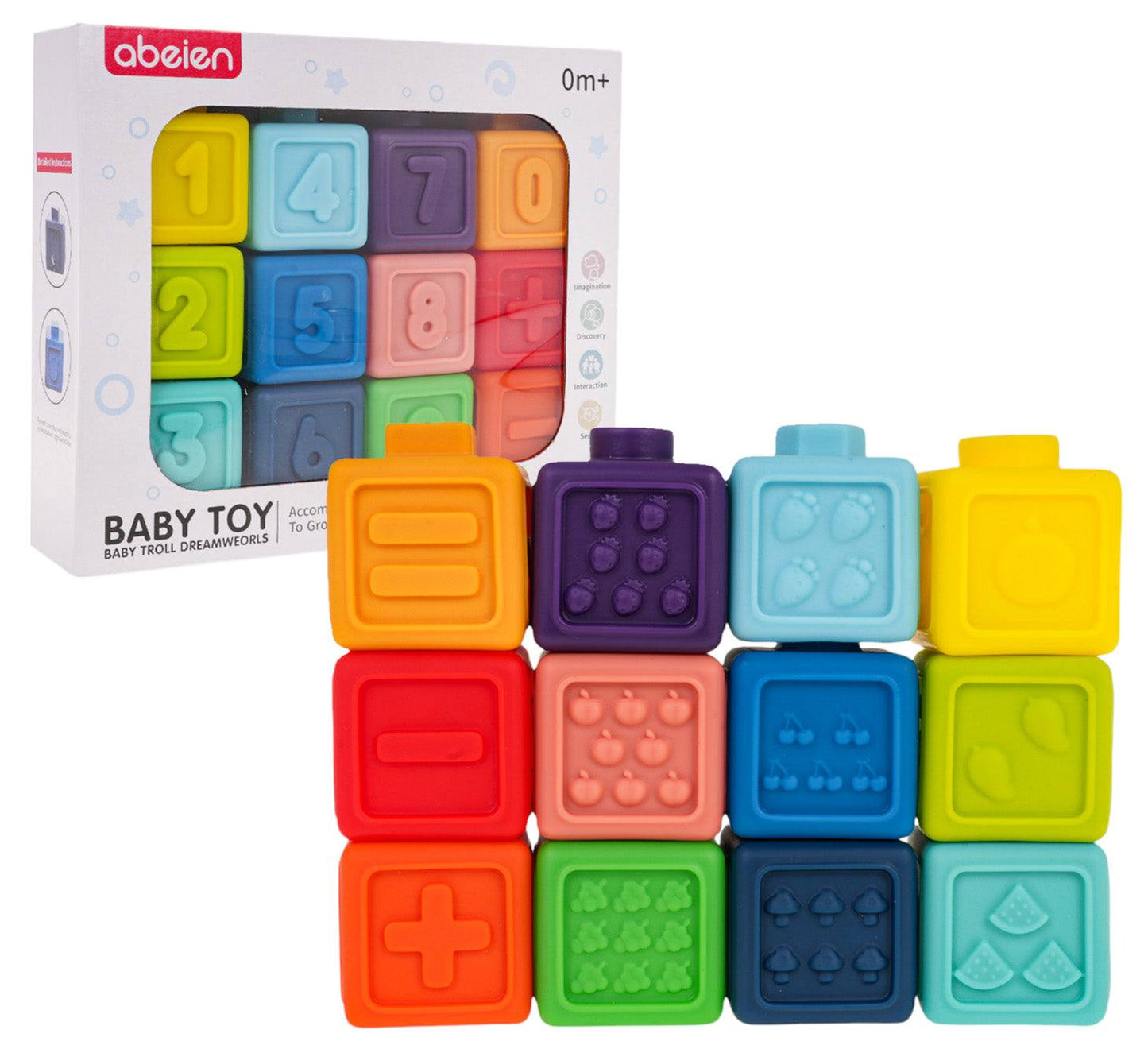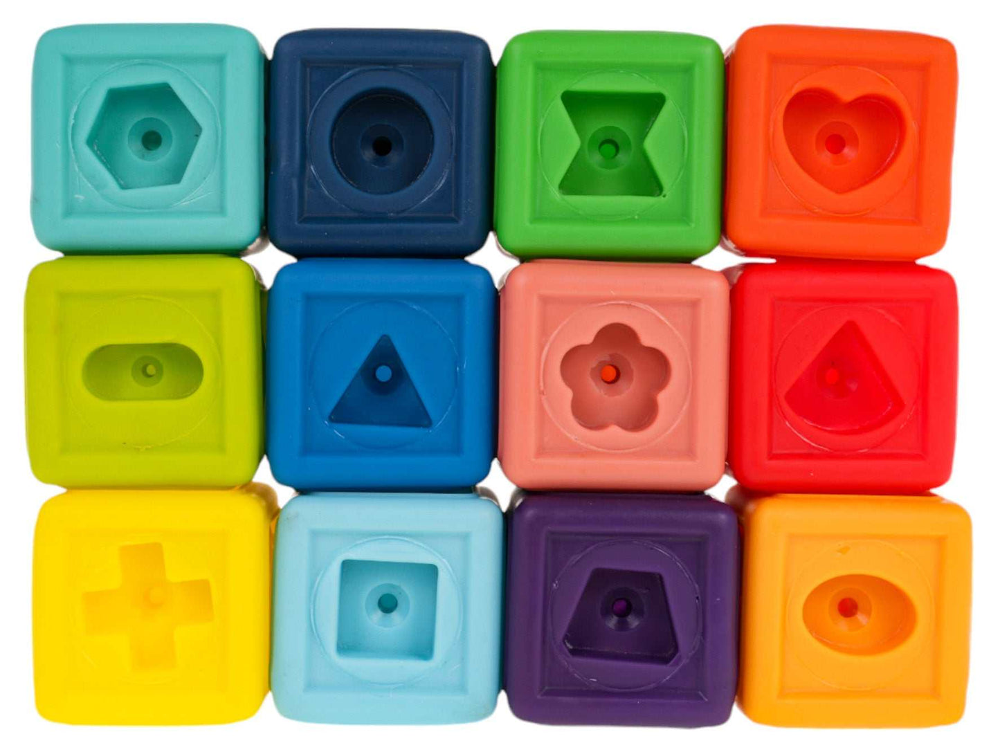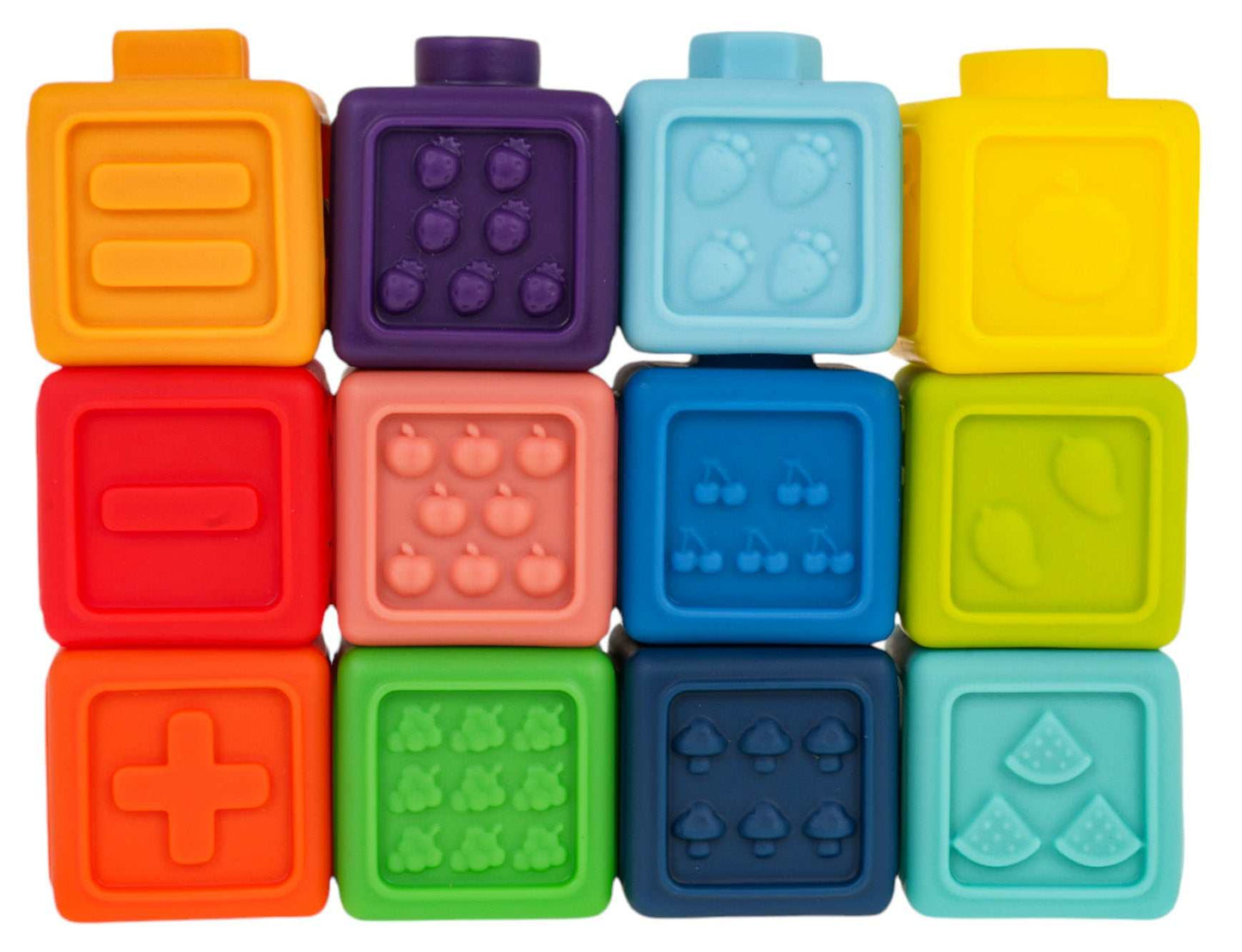 - Wzmacnia precyzyjną motorykę i koordynację ręka-oko poprzez łatwy do chwytu, miękki kształt każdej kostki.
