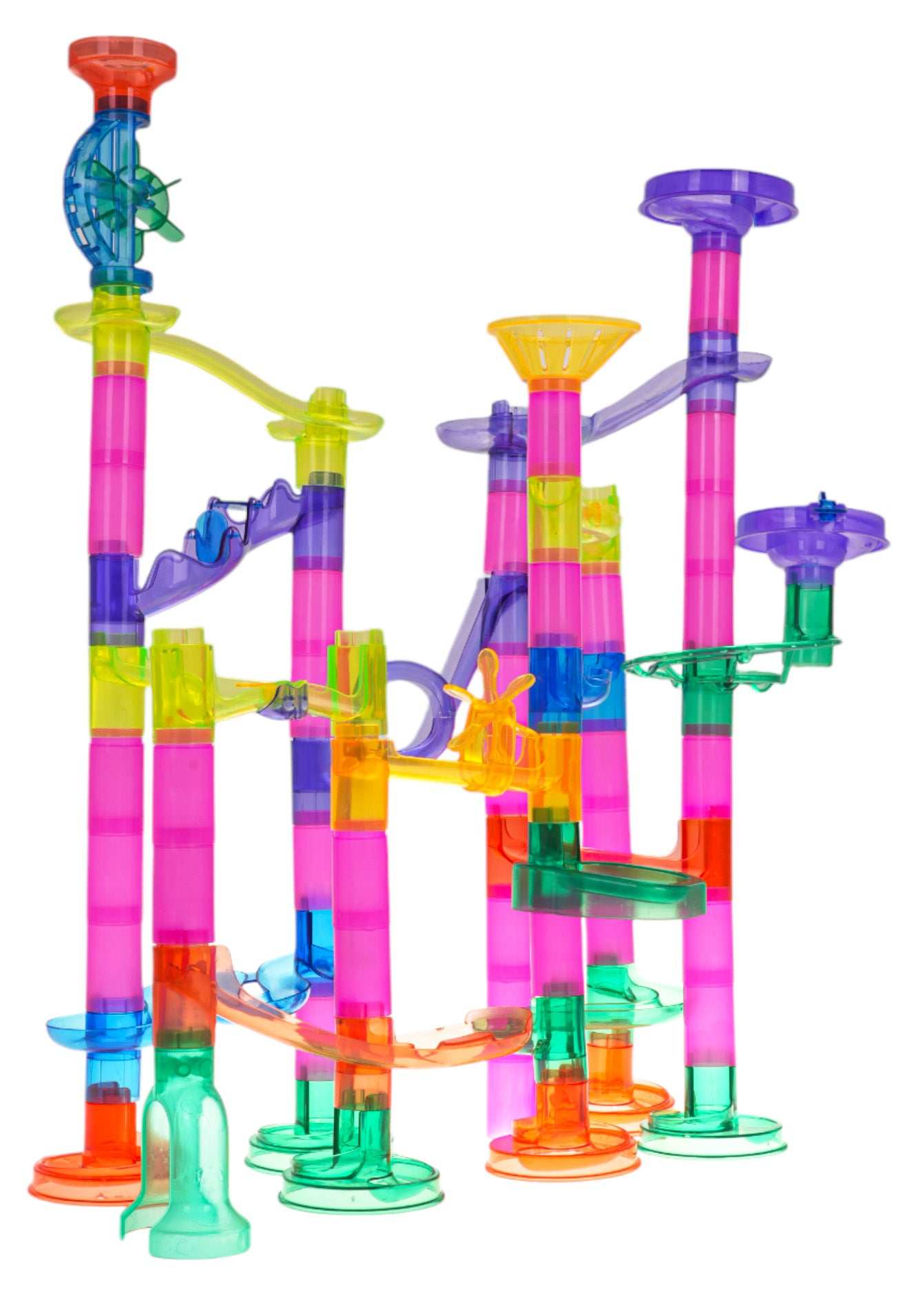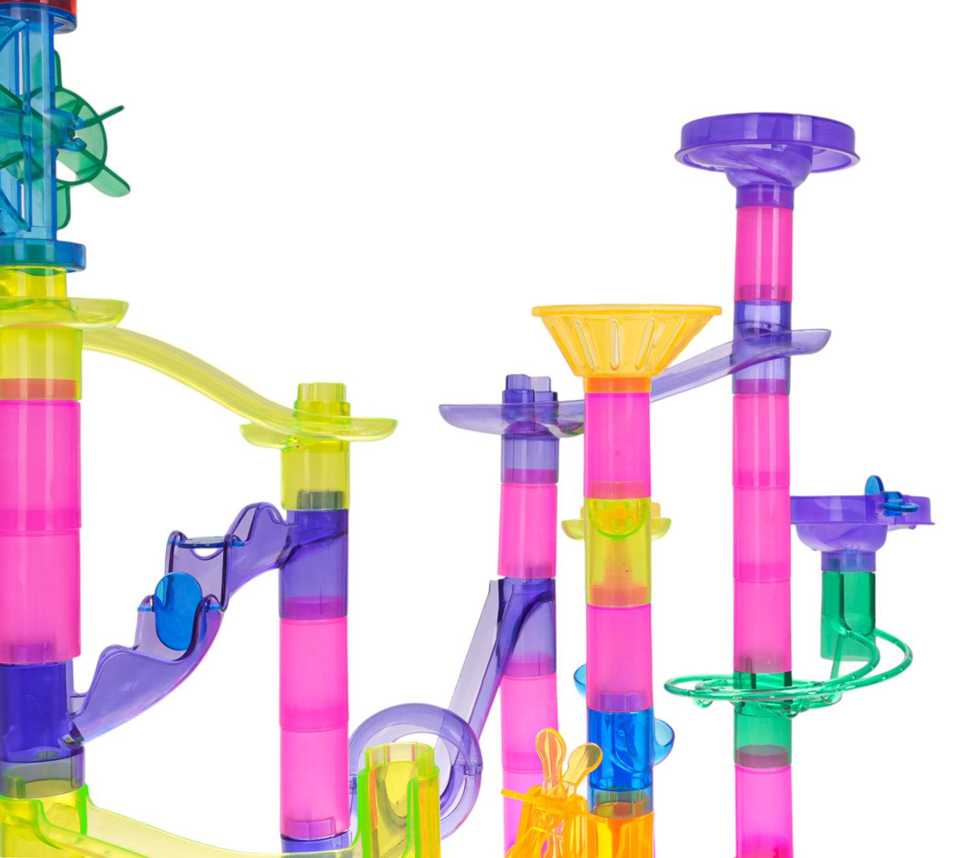 - Kuleczki i tuneliki tworzące dynamiczny tor, który uruchamia kuleczki od razu po zbudowaniu konstrukcji.