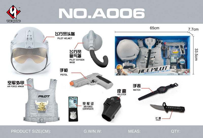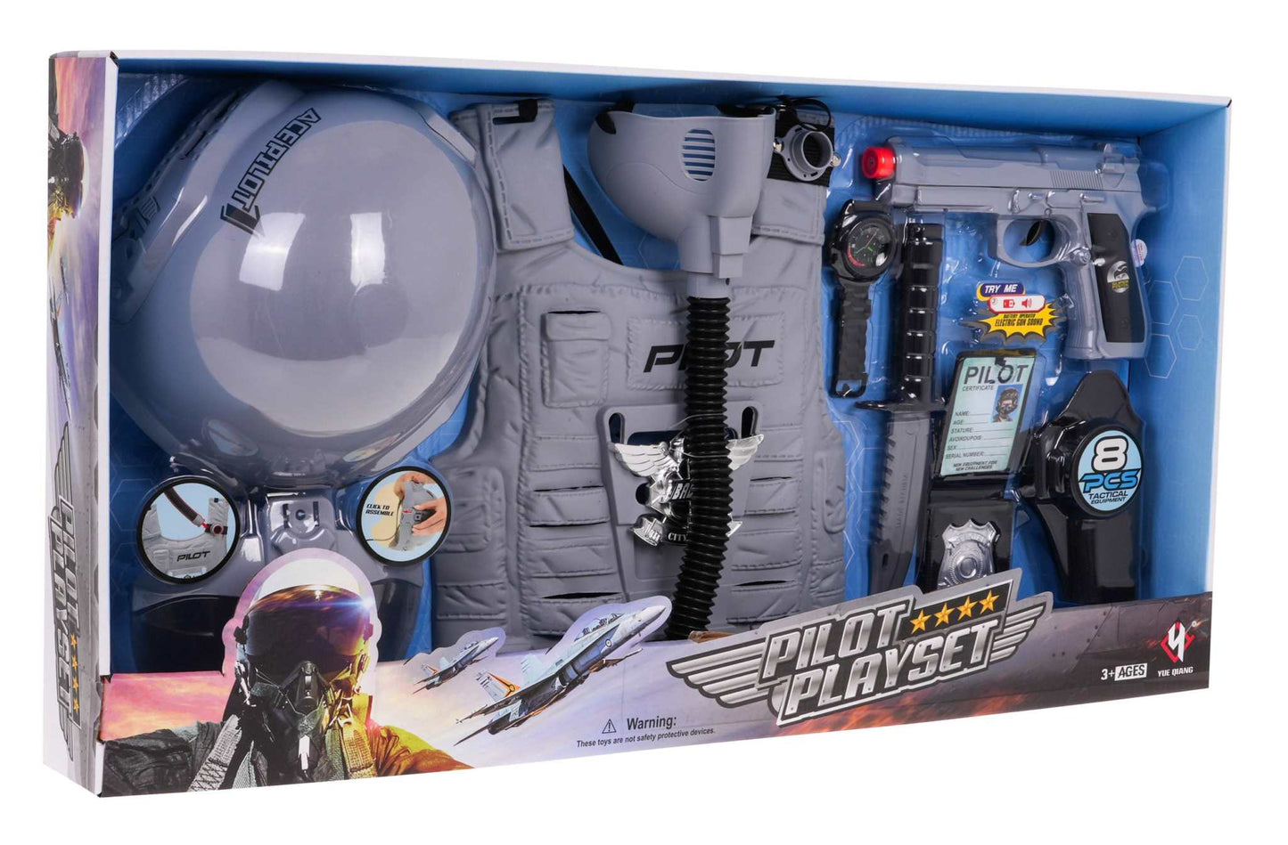 Zestaw Małego Pilota dla dzieci 3+ – Interaktywny Pistolet + Regulowany Kask + Kamizelka z Maską Tlenową + Akcesoria
