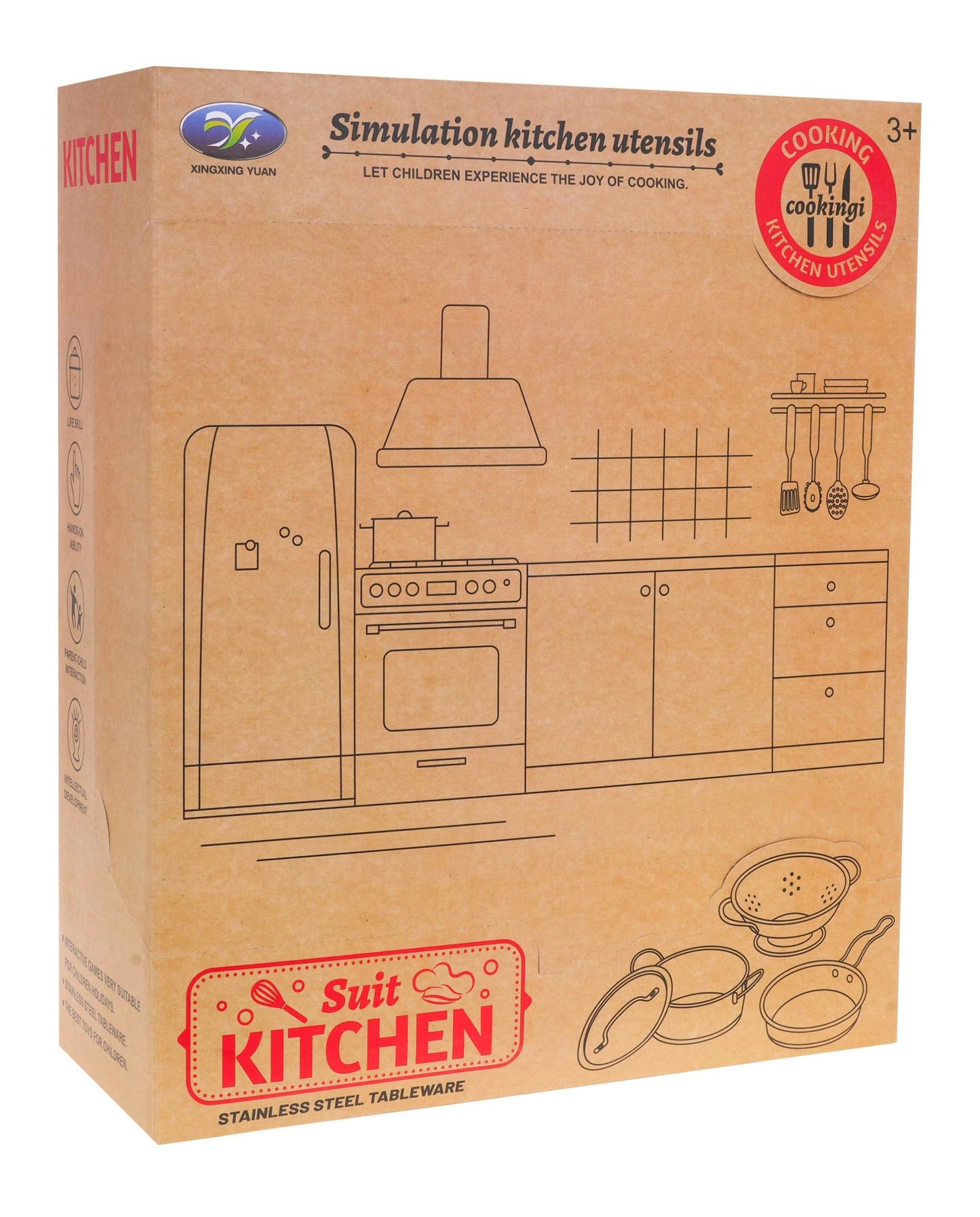 - Zestaw 13 elementów obejmuje garnki, przybory kuchenne, fartuch i inne akcesoria niezbędne w każdej dziecięcej kuchni.