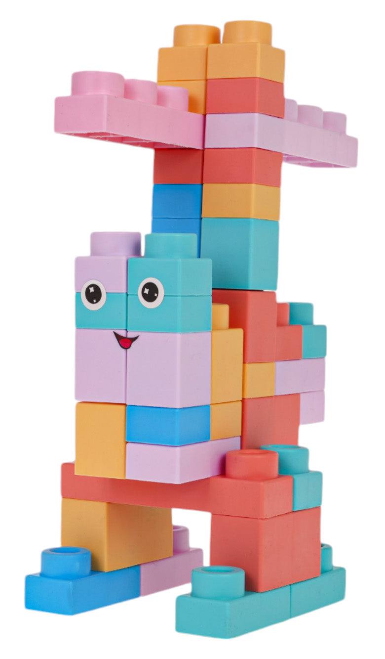 To kolorowy zestaw 44 miękkich klocków przeznaczony dla dzieci od 3 lat. Idealnie sprawdzi się w domowych zabawach, przedszkolu i codziennych kreatywnych projektach.