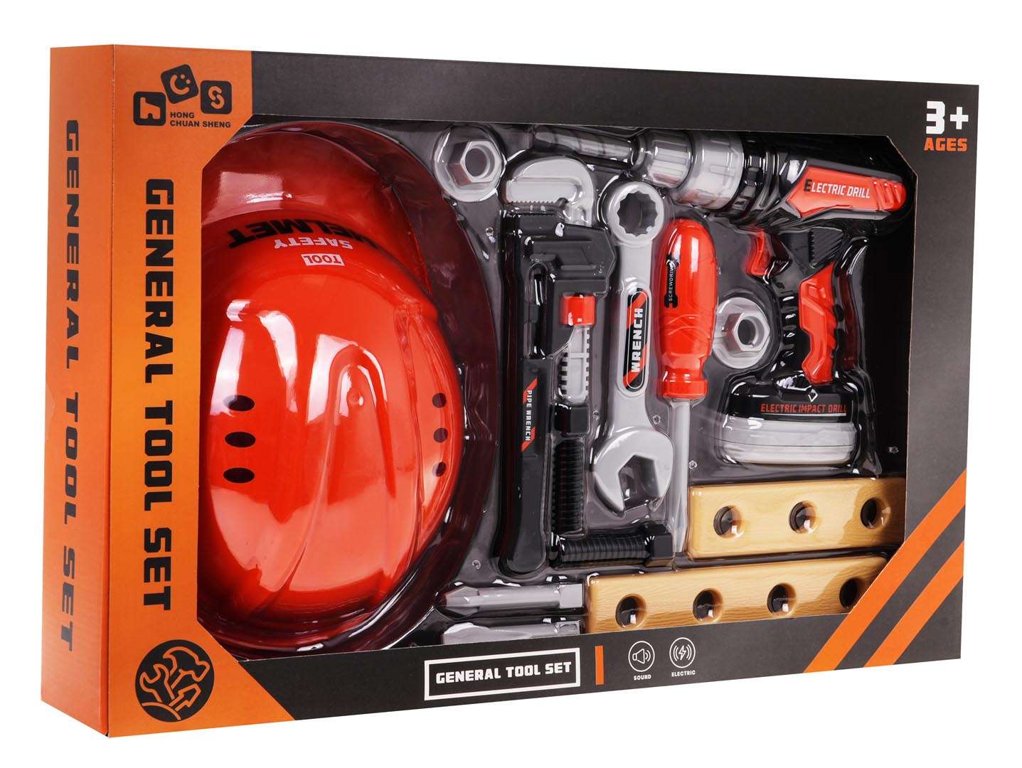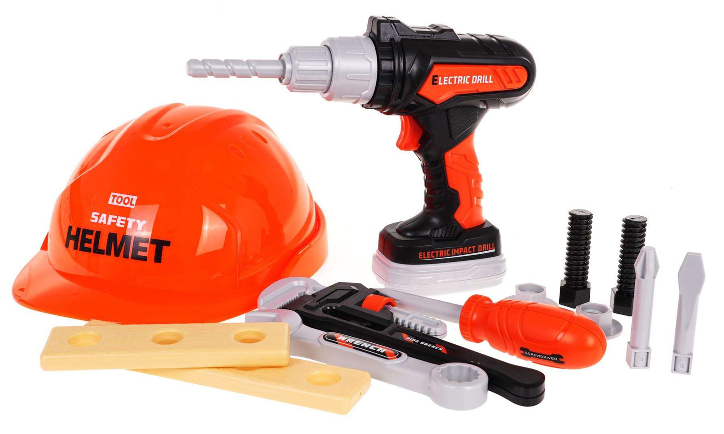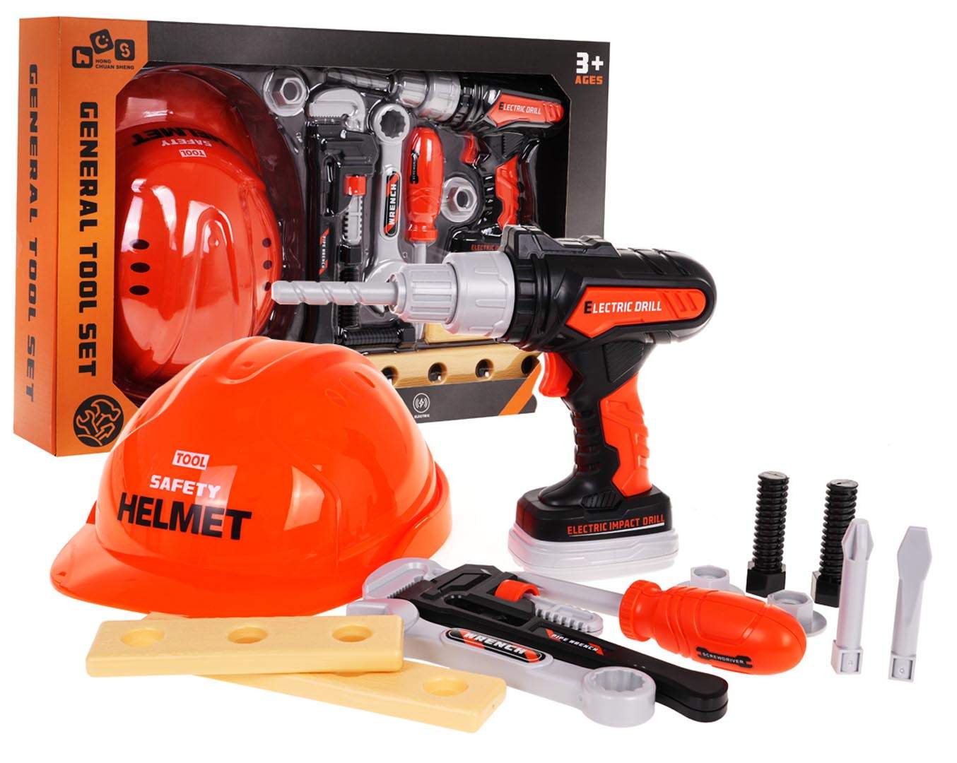 Bogato wyposażony zestaw narzędzi z kaskiem i interaktywną wiertarko-wkrętarką dla dzieci powyżej 3. roku życia łączy zabawę z nauką obsługi podstawowych narzędzi. Zestaw wykonany został z plastiku najwyższej jakości i składa się z 15 elementów.