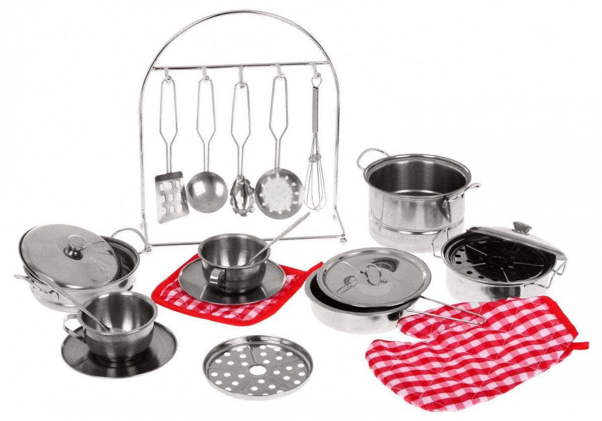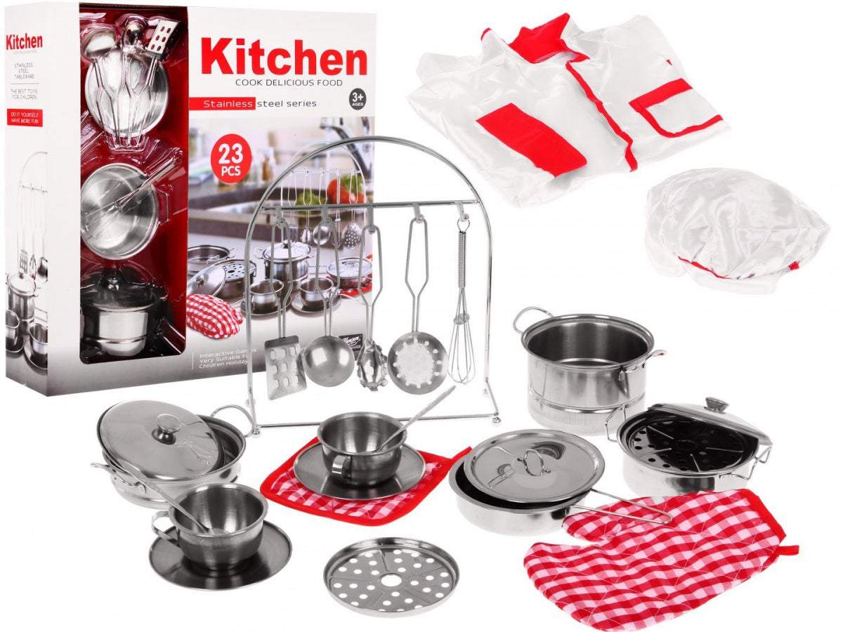 Metalowy Zestaw Szefa Kuchni Dla Dzieci 23 Elementy Garnki
